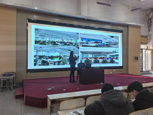 辅导员朱波老师向同学们介绍了此次活动的内容,详细说明了参与企业的基本情况、岗位需求以及招聘流程等重要信息。他着重强调了此次宣讲会为同学们提供的宝贵就业机会,鼓励大家积极与企业交流互动。随后,各公司的招聘负责人分别介绍了公司的业务范围、企业文化、发展历程、用人需求、福利待遇、员工培养模式等情况。鼓励学生多尝试,利用实习的时间培养自身的沟通能力和解决问题的能力。最后,各公司设置了提问答疑环节,同学们积极踊跃地提出心中的疑问,涉及工作地点、职业发展路径、实习期间的具体工作内容等方面。招聘负责人耐心细致地为同学们解答,让同学们对各公司有了更深入、更全面的了解。宣讲会结束后,不少同学主动与企业招聘人员进一步交流。