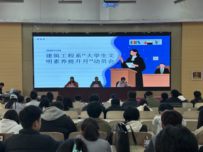 为培育社会主义核心价值观,全面提升大学生文明素养,营造文明校园氛围,建筑工程系于11月4日在海润楼二楼报告厅召开“大学生文明素养提升月”活动动员大会,26届学生会干部,2024级、2025级班级负责人,2025级全体团员,社团负责人以及教师代表参会。