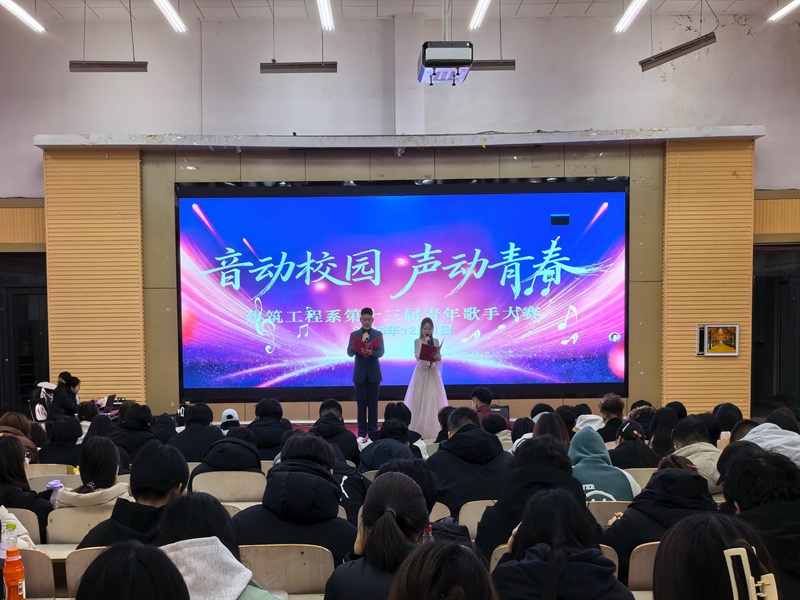 为丰富校园文化生活,展现青年学子蓬勃向上的精神风貌,12月2日晚,建筑工程系第十三届青年歌手大赛在海润楼二楼报告厅举办,大赛以“音动校园,声动青春”为主题,吸引21名选手同台竞技。